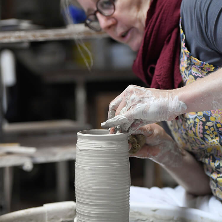geht es darum, die wichtigsten Handgriffe und Techniken zu lernen. Um ein erstes Gespür für das Zentrieren und den Drehton zu bekommen. Erste eigene Gefäße entstehen, Formen und Proportionen werden wahrgenommen.